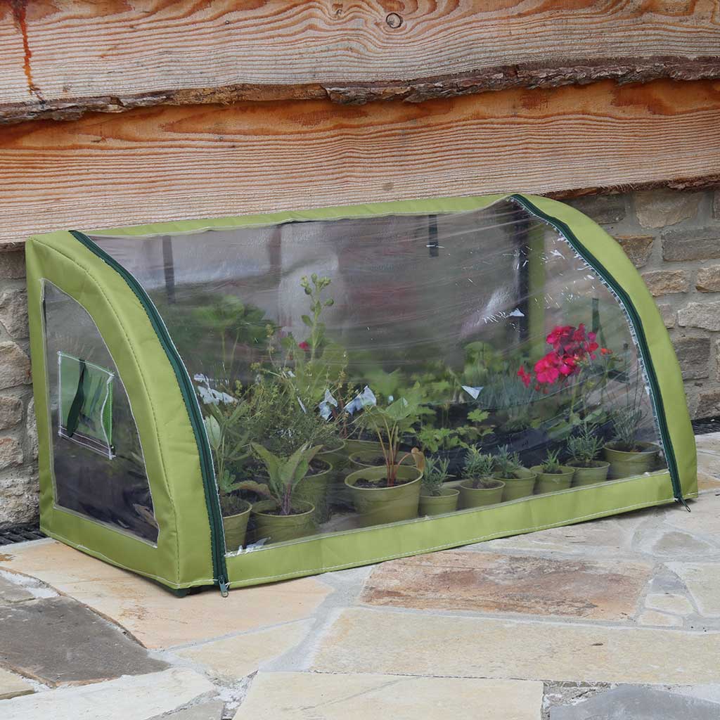 The sturdy frame is constructed from powder-coated steel with tough plastic joints, ensuring durability and long-lasting use. The thick cover is made from tough, long-lasting woven fabric combined with thick clear PVC and sturdy zips for reliable protection. Position the coldframe in a bright, sunny spot to maximize direct sunlight exposure.