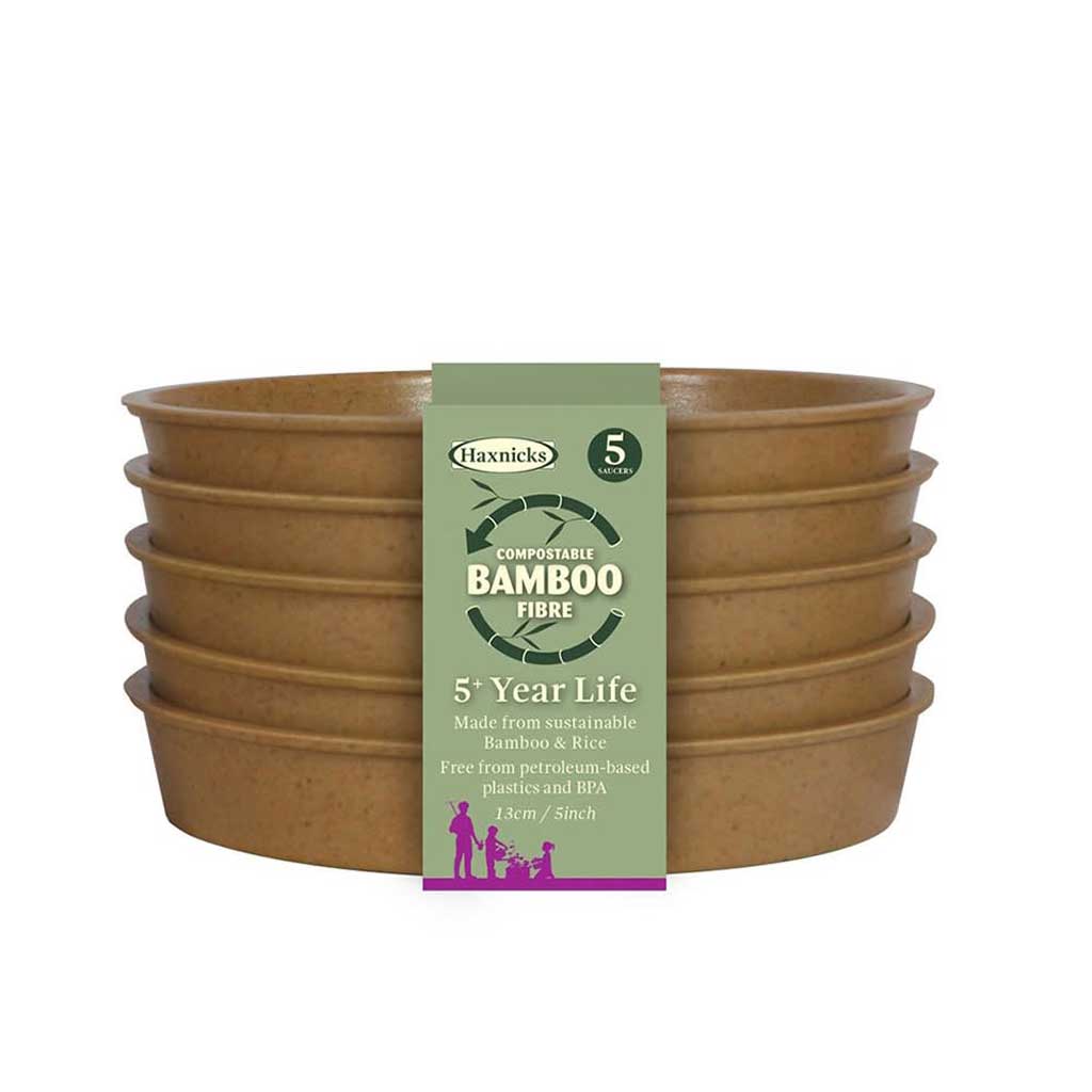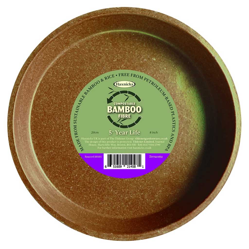 Haxnicks’ sustainable bamboo plant saucers are crafted from a natural blend of bamboo fibre, rice starch, and resin derived from organically occurring compounds. Designed to be an eco friendly alternative to plastic, these saucers are BPA-free, plastic-free, and fully compostable - ideal for gardeners looking to reduce their environmental impact.