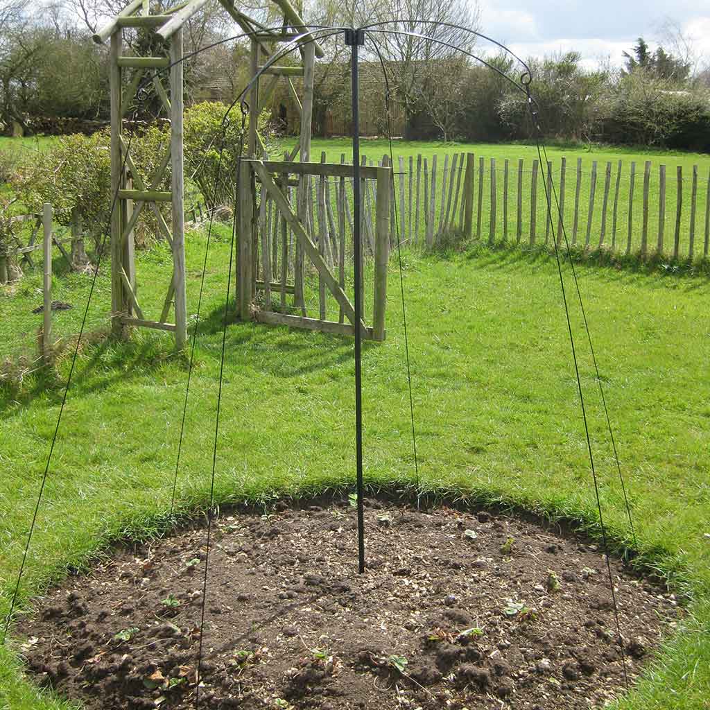 Each pack includes 6 curved parasol arms; a central pole and ground spike in 4 sections, 6 tough polypropylene strings and 6 galvanized steel ground pegs. The spaced out parasol arms allow room for plants to grow whilst supporting climbers in a circular display.