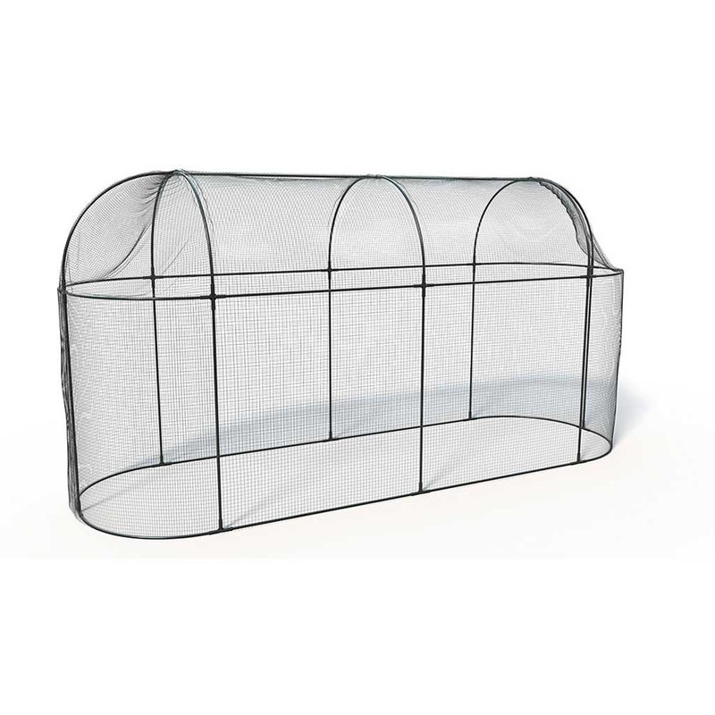 The 10mm² plant protection netting mesh cover fits neatly over the top and clips to the frame. Also included are galvanised steel U shaped pegs to keep it where you want it. To make it easy to take home all the parts come flat-packed in a box.